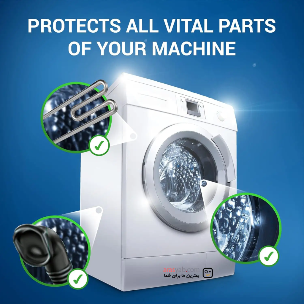 بسته 15 عددی این محصول برای استفاده دوره‌ای طراحی شده و گزینه‌ای مناسب برای نگهداری اصولی از ماشین لباسشویی در مناطق با آب سخت است.
