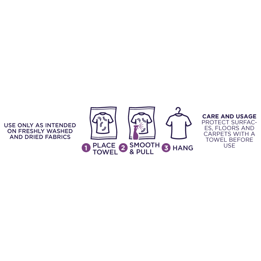 اسپری لنور بدون آسیب به بافت پارچه، لباس‌ها را تازه، خوشبو و آماده استفاده می‌کند و برای انواع لباس قابل استفاده است.