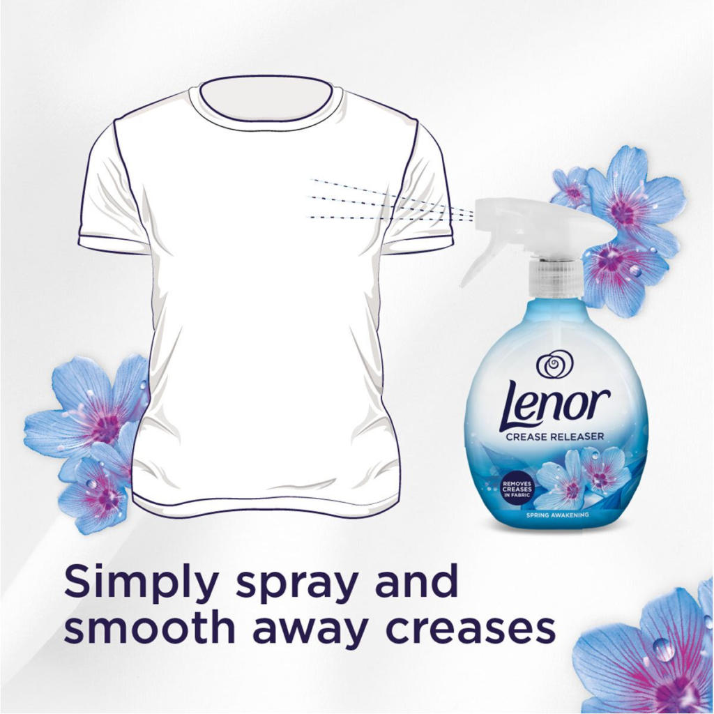 اسپری از بینبرنده چروک و خوشبوکننده لباس لنور با رایحه بیداری بهار، چروکهای سطحی را کاهش داده و لباسها را تازه و خوشبو میکند.