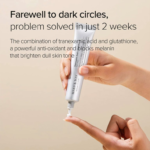 کرم دور چشم ضدلک و روشنکننده گلوتا مری اند می با فرمول روشنکننده و مغذی، به کاهش تیرگی، لک و کدری اطراف چشم کمک کرده و پوستی شفافتر، یکنواختتر و شادابتر ایجاد میکند.